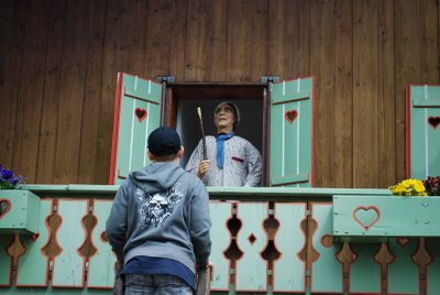 A typical south German custom a long time a go was "Fensterln" (lit. translated "windowing"), where a boy climed up a ladder to his graceful maid to confess his love (and to bypass her parents). In the park there is a house with a ladder. And when you climb up different people apper at the window. E.g. the angry father. ;-)